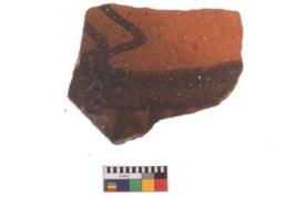 | Description / विवरण | Specimen of potsherd with decorative geometric painting, Type Black on Red ware . |