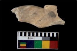 | Description / विवरण | Fragment of a decorated bangle. It is creamish in colour and rectangular in cross section. |