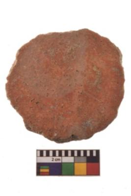 | Description / विवरण | Specimen of terracotta disc; it is irregular at the circumference and having smooth surface. |