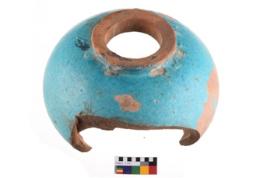 | Description / विवरण | A half broken pot of a China ware; the surface is plain turquoise in color. |