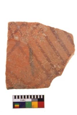| Description / विवरण | Specimen of potsherd with decorative geometric painting. Type Black on Red Ware . |