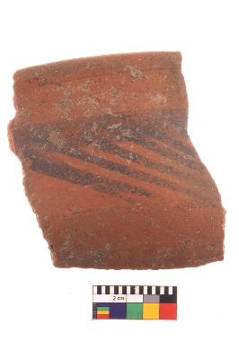 | Description / विवरण | Specimen of potsherd with black decorative geometric Linear painting, Type Black on Red Ware . |