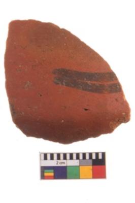 | Description / विवरण | Specimen of potsherd with traces of decorative geometric painting, Type Black on Red ware . |