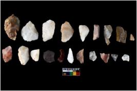 | Description / विवरण | There are n 25 flakes; among them 17 are made up of quartz and 8 are made up of chert. Some are tapering at one end.All are having sharp edges. |