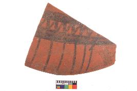 | Description / विवरण | Specimen of potsherd with black decorative geometric painting, Type Black on Red Ware . |