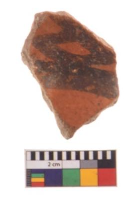 | Description / विवरण | Specimen of potsherd with decorative geometric painting, Type Black on Red ware . |