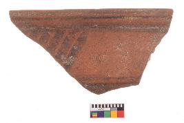 | Description / विवरण | Specimen of potsherd with black decorative geometric Linear painting, Type Black on Red Ware . |