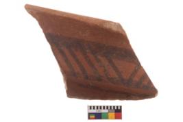 | Description / विवरण | Specimen of potsherd with decorative geometric painting, Type Black on Red ware . |