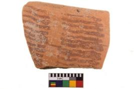 | Description / विवरण | Specimen of potsherd with decorative geometric painting. Type Black on Red Ware . |