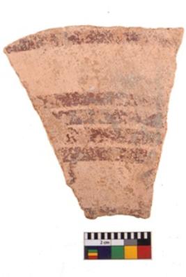 | Description / विवरण | Specimen of potsherd with decorative geometric painting. Type Black on Red Ware . |
