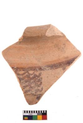 | Description / विवरण | Specimen of potsherd with decorative geometric painting. Type Black on Red Ware . |