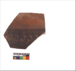 | Description / विवरण | Specimen of potsherd with decorative geometric painting, Type Black on Red ware . |