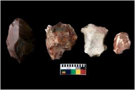| Description / विवरण | There are n 4 of utilized worked cores.They show multidirectional irregular dominant scar pattern. One is tapering on one end and most of them have sharp edges. |