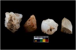 | Description / विवरण | There are n 4 of utilized worked cores. They show multidirectional irregular scar pattern. Two are partially broken. |