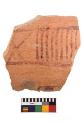 | Description / विवरण | Specimen of potsherd with decorative geometric painting. Type Black on Red Ware . |