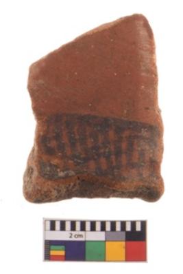 | Description / विवरण | Specimen of potsherd with decorative geometric painting, Type Black on Red ware . |