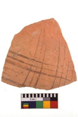 | Description / विवरण | Specimen of potsherd with decorative geometric painting. Type Black on Red Ware . |