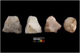 | Description / विवरण | There are n 4 of utilized worked cores. They show multidirectional irregular dominant scar pattern. One is circular in shape. |