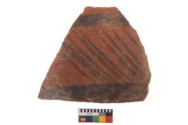 | Description / विवरण | Specimen of potsherd with decorative geometric painting, Type Black on Red ware . |