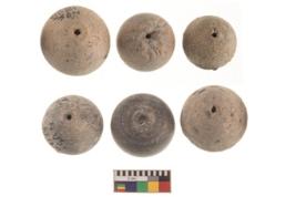 | Description / विवरण | Specimen n 6 having arecanut shape; smooth reddish-black surface, tubular perforation. They are circular in cross-section. |