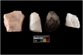 | Description / विवरण | There are n 4 utilised worked cores; among them three are made up of quartz and one is chert which is having groove mark, all are having flat base. |