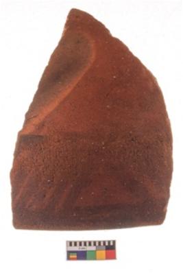| Description / विवरण | Specimen of potsherd black on red painted pottery. It is fine fabric in sharp contrast with painted design are executed in black pigment. |