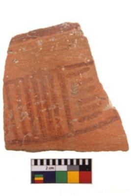 | Description / विवरण | Specimen of potsherd with decorative geometric painting. Type Black on Red Ware . |