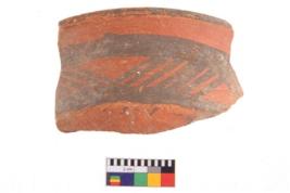 | Description / विवरण | Specimen of potsherd with decorative geometric painting, Type Black on Red ware . |