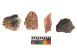 | Description / विवरण | There are n 4 utilized worked flakes; they show multidirectional irregular scar pattern on both dorsal and ventral face of the flakes.Three are tapering at one end and all are having sharp edges. |