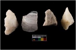 | Description / विवरण | There are n 4 utilised worked cores; among them three are made up of quartz and one is chert which is having groove mark, all are having flat base. |