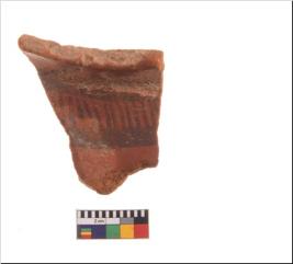 | Description / विवरण | Specimen of potsherd with decorative geometric painting, Type Black on Red ware . |
