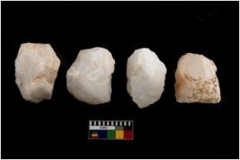| Description / विवरण | There are n 4 of utilized worked cores. They show multidirectional irregular scar pattern and have blunt edges. |