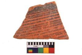 | Description / विवरण | Specimen of potsherd with decorative geometric painting. Type Black on Red Ware . |