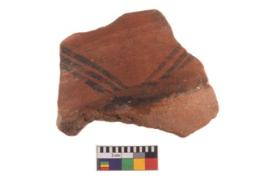 | Description / विवरण | Specimen of potsherd with decorative geometric painting, Type Black on Red ware . |