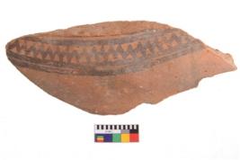 | Description / विवरण | Specimen of potsherd with decorative geometric painting, Type Black on Red ware . |