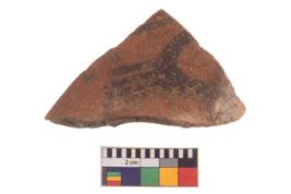 | Description / विवरण | Specimen of potsherd with decorative geometric painting, Type Black on Red ware . |