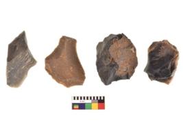 | Description / विवरण | There are n 4 utilized flake cores. There are multidirectional irregular scar pattern on both dorsal and ventral face of the flake cores. Two have blunted edges and two have round edges. |
