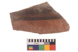 | Description / विवरण | Specimen of potsherd with decorative geometric painting, Type Black on Red ware . |