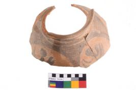| Description / विवरण | Specimen of potsherd with decorative geometric painting, Type Black on Red ware . |