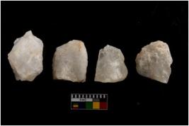 | Description / विवरण | There are n 4 of utilized worked cores. They show multidirectional irregular scar pattern. Three have flat base. |