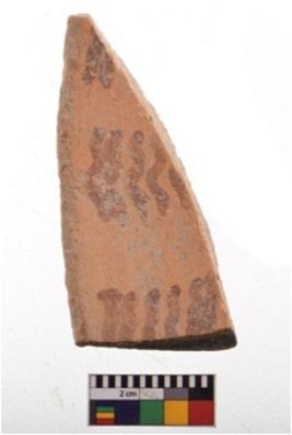 | Description / विवरण | Specimen of potsherd with decorative geometric painting. Type Black on Red Ware . |