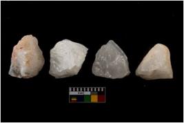 | Description / विवरण | There are n 4 of utilized worked cores. They show multidirectional irregular scar pattern and have flat base. |