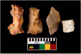 | Description / विवरण | There are n 4 of utilized worked cores. They show multidirectional irregular scar pattern. Three are tapering on one end and are elongated in shape. |
