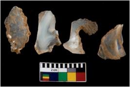 | Description / विवरण | There are n 4 of utilized worked cores. They show multidirectional irregular scar pattern and are tapering on one end. |