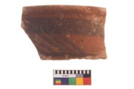 | Description / विवरण | Specimen of potsherd with decorative geometric painting, Type Black on Red ware . |