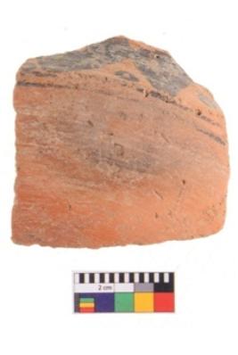 | Description / विवरण | Specimen of potsherd with traces of decorative geometric painting, Type Black on Red ware . |