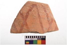 | Description / विवरण | Specimen of potsherd with decorative geometric painting. Type Black on Red Ware . |
