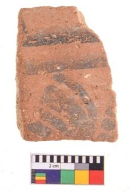 | Description / विवरण | Specimen of potsherd with traces of decorative geometric painting, Type Black on Red ware . |