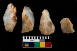 | Description / विवरण | There are n 4 of utilized worked cores. They show multidirectional irregular scar pattern. Three are tapering at one end. |