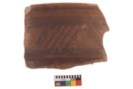 | Description / विवरण | Specimen of potsherd with decorative geometric painting, Type Black on Red ware . |